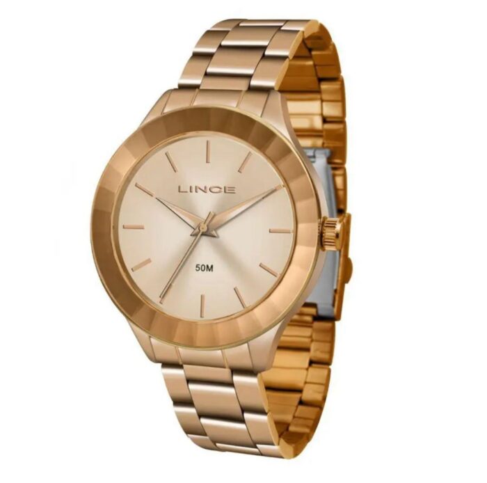 Relógio marca Lince, feminino. Caixa em aço, pulseira dourada, fundo rosê e conjunto de brinco e colar folheado de brinde. (Brinde pode ir diferente da foto) *Vidro de cristal mineral; *A prova d'água, até 50m; *1 ano de garantia pela fábrica.