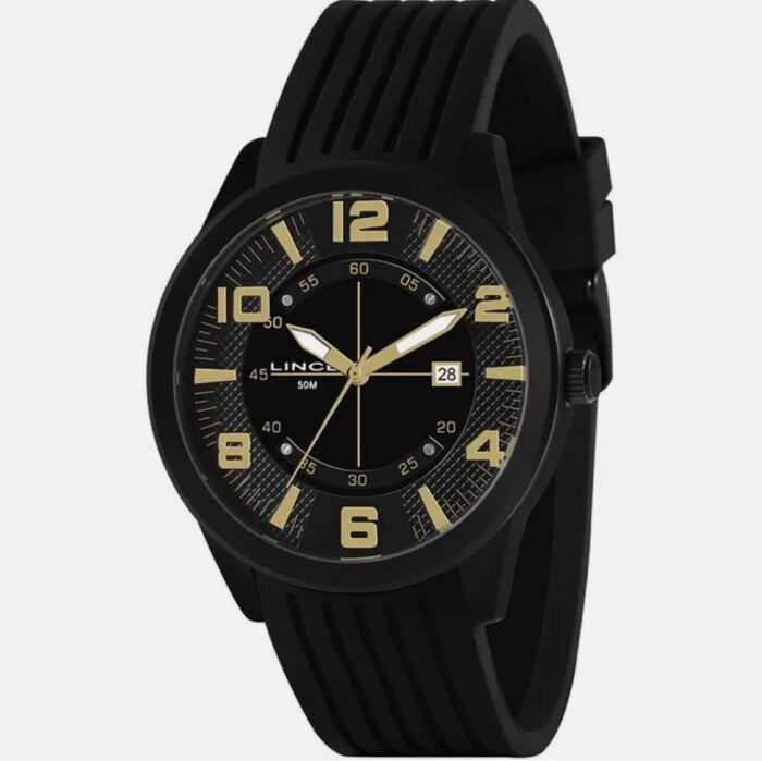 Relógio masculino marca Lince. Caixa em aço, pulseira em silicone preta.